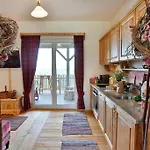 Neben einem Blick auf die Berge bietet die Unterkunft einen Balkon, eine Terrasse und eine Sitzecke sowie ist mit schallisolierten Fenstern ausgestattet. Die Medienausstattung im Zimmer umfasst ein Flachbildfernseher mit Satellitenkanälen. Die Gäste dieses Apartments genießen den Komfort von einem Haartrockner, Morgenmänteln und Badelaken im Badezimmer. Außerdem gibt es eine getrennte Toilette und eine Dusche usw.